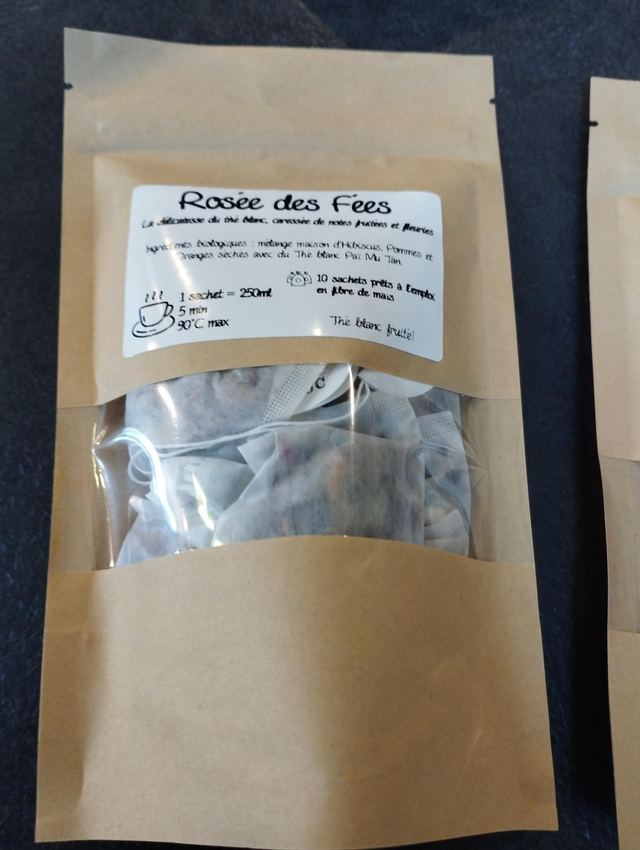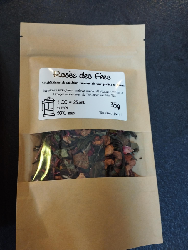 Thé blanc Paï Mu Tan, pomme, hibiscus orange, églantier, raisin, fraises et framboises.