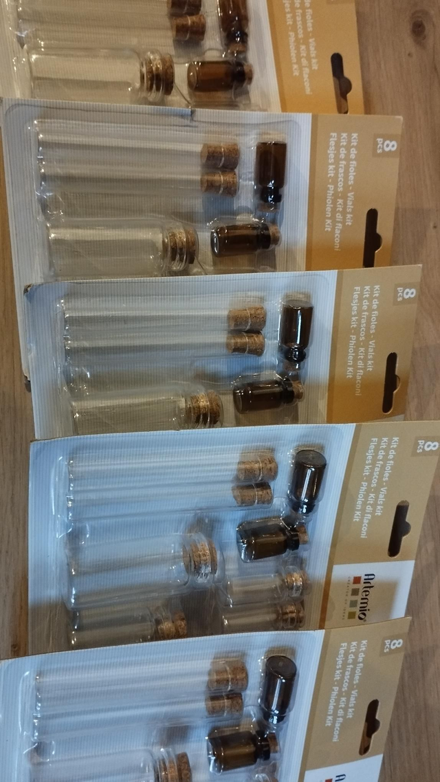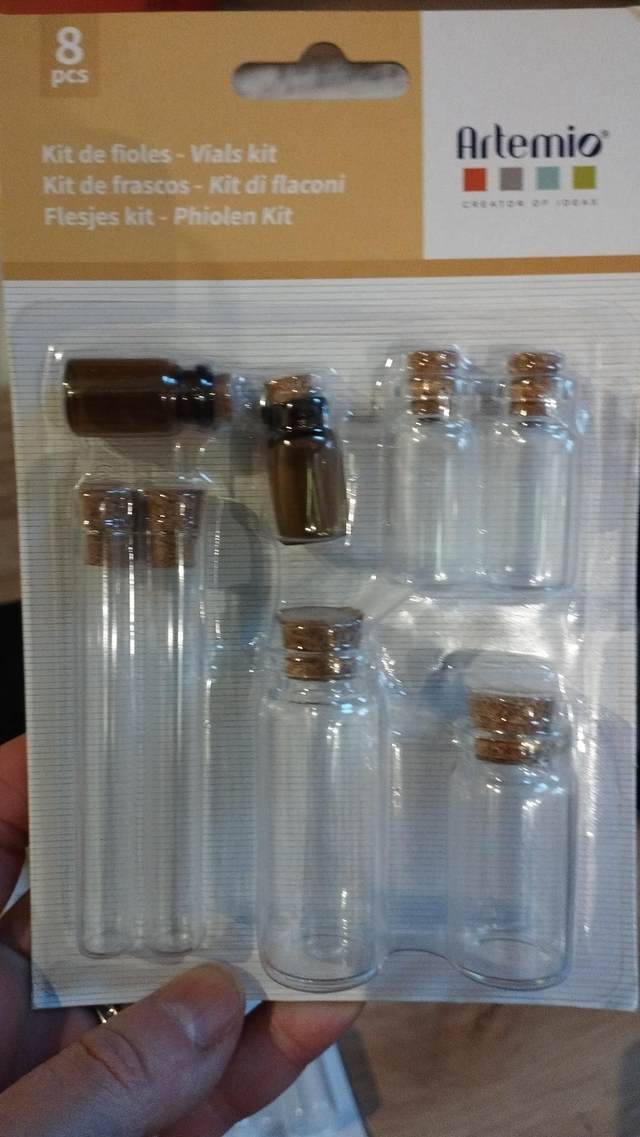 Lot de 8 petites fioles en verre avec bouchons, de différentes tailles, pour effet potions magiques ou y mettre des graines...